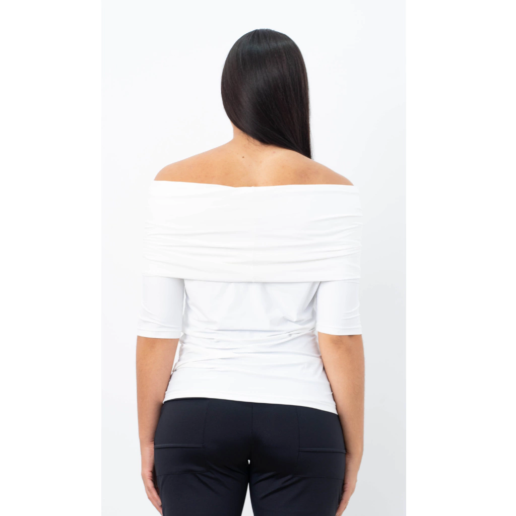 A Blusa Ombro a Ombro Manga Curta Decote Doblado em Malha Fluity II CO2 Control da Santa Constância é uma peça sofisticada e cheia de estilo, ideal para quem busca conforto e elegância. A Santa Constância, parte da renomada família Pascolato, é conhecida pela sua excelência na produção de tecidos.