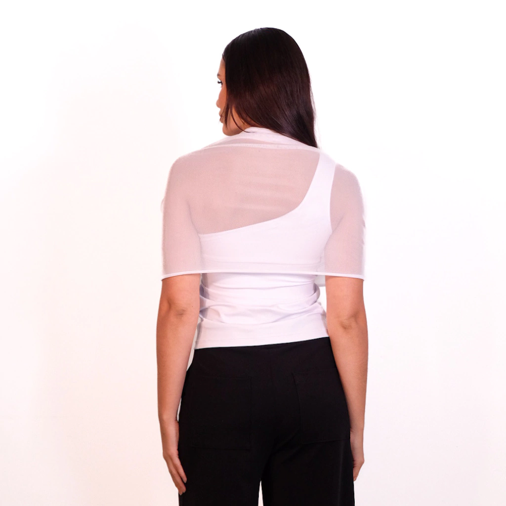 Regata Um Ombro Só em Malha Dupla – Suplex Light CO₂ Control com Xale em Tule Span e Presilha Removível
